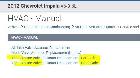 If, however, you need the blend air door actuator (air temperature actuator), let me know if it is for the left or right side.