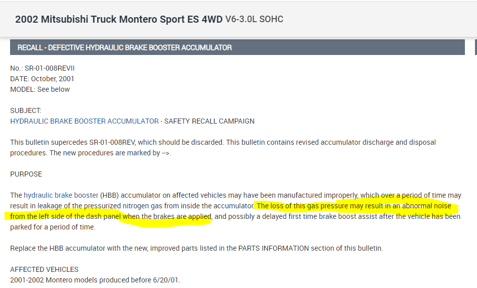 The vehicle is a Montero Sport. There is a buzzing sound when braking at very low speed like moving up in traffic. It also happens after a normal stop but only the final few feet. You can feel it in the pedal.