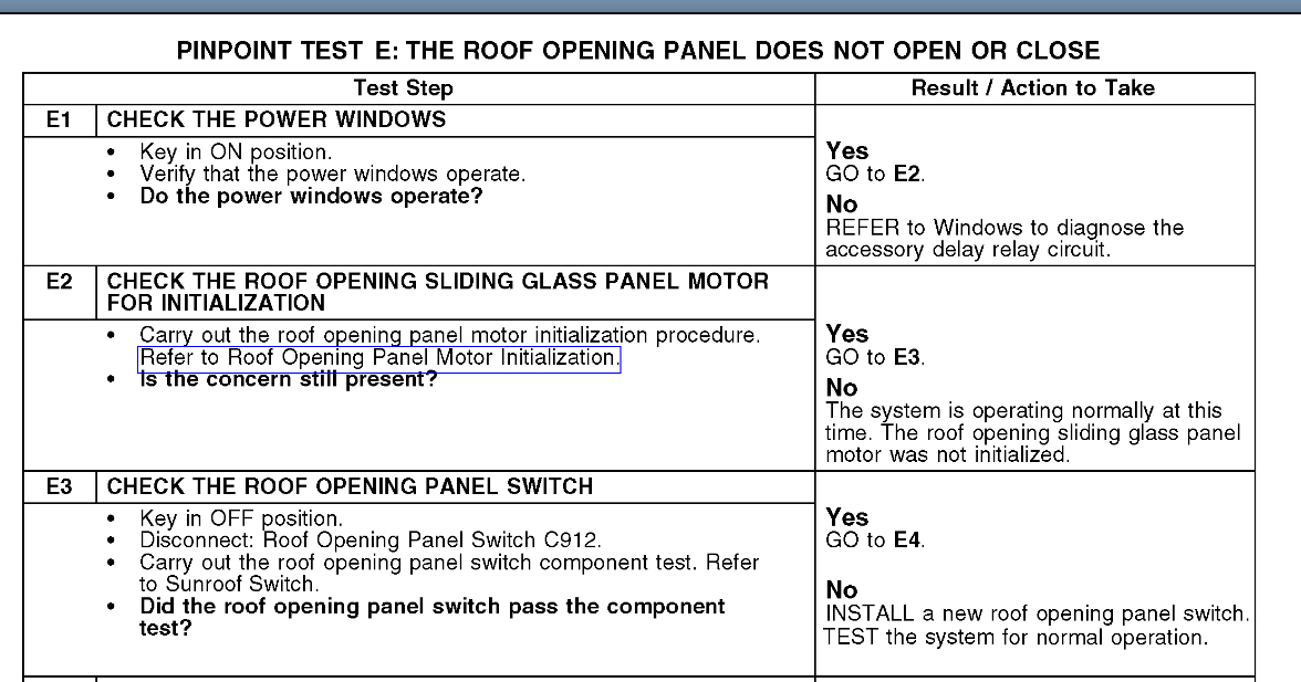 In the diagrams down below I have included the factory diagnostic troubleshooting guide for the issue that is going on with your sunroof. It should enable you to track down and fix the problem that your vehicle is having. Please go through the guide and get back to us with what you are able to find out.