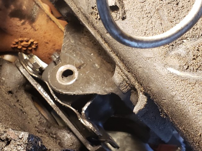 okay, with good conscience I couldn't put it back together without the bracket. But the engine won't lower down into place where the through bolt will line up. What the heck? The procedure simplifies it and the pictures downplay it, but this is a pain.