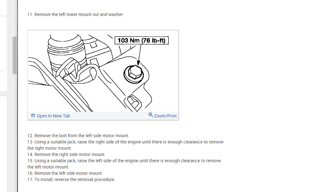 Thanks, but those are the exact same instructions as the last set. Which help but you didn’t answer my questions. What is the orientation of the instructions? Is left side the passenger or driver side? Can I lift one side of the engine at a time or can I use a block of wood and lift the entire engine at one time to get to the mounts? Also, is the axle bushings they refer to where the differential connects? In the instruction number 10 I believe where it says to remove upper axle bushing is that an allen nut or a hex nut or just a normal nut. Sorry about all the questions I just want to make sure I have everything I need and am prepared. I hate having to stop midway through a job to get another tool or have to figure something out.