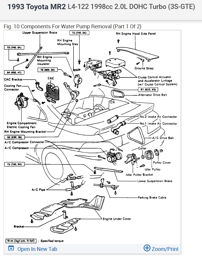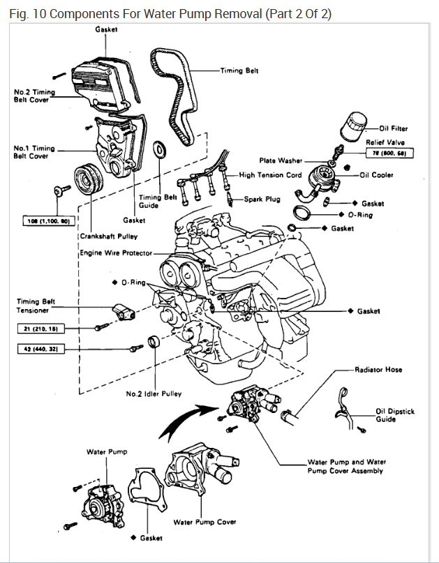 Yep, that is a fun car. You will need to replace the timing belt at the same time so I would do the tensioner for that as well. Here is an exploded view of the job so you can replace the water pump, I also included the timing belt marks so you can complete the job. Check out the images (below). Please upload pictures or videos in your response of any problems so we can see what to help you with.