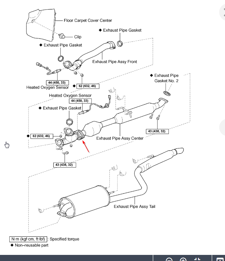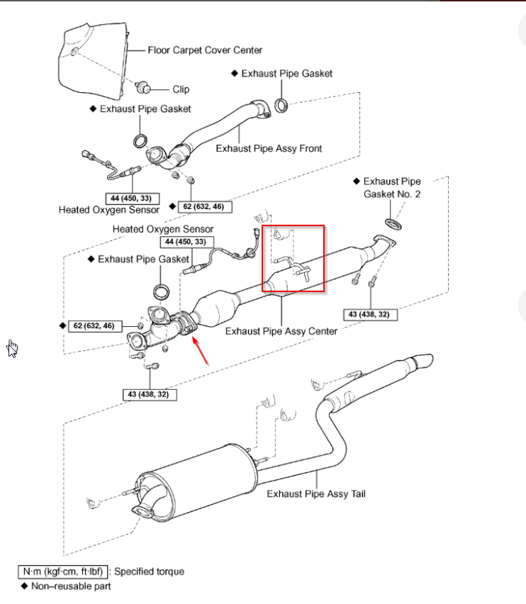 Take a look at this attachment. You should be able to remove the two bolts where the gasket is, and then remove the exhaust hanger that I circled and that will allow you to drop the system down enough to remove what is there and put the new gasket on.