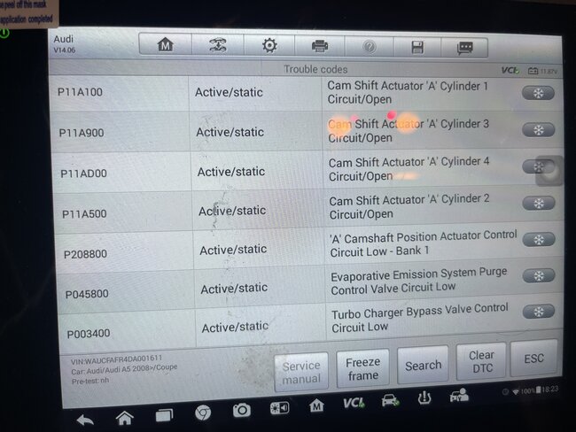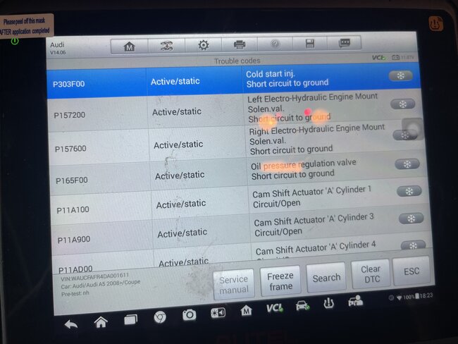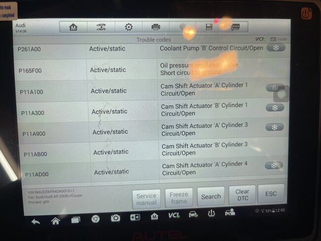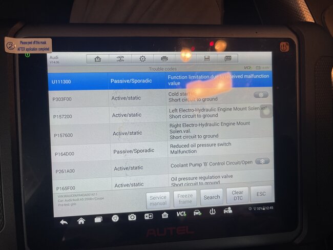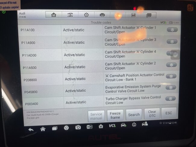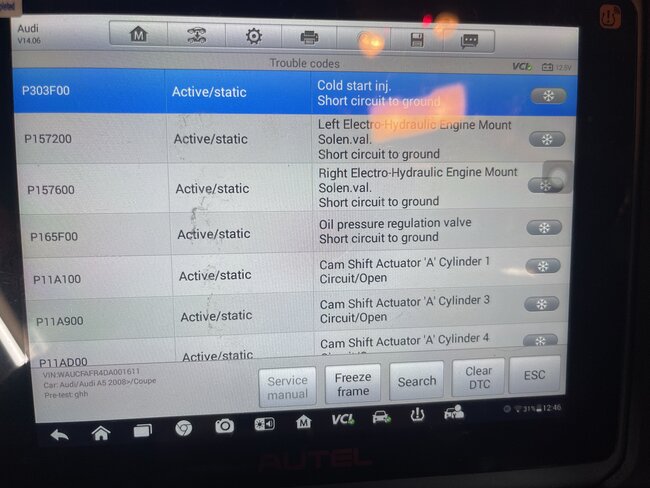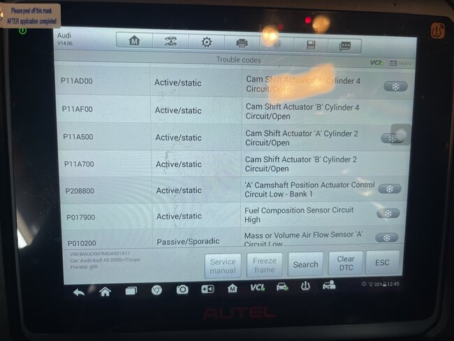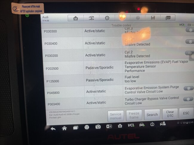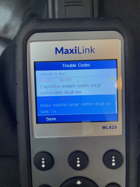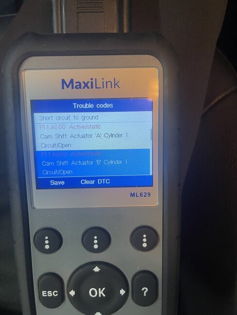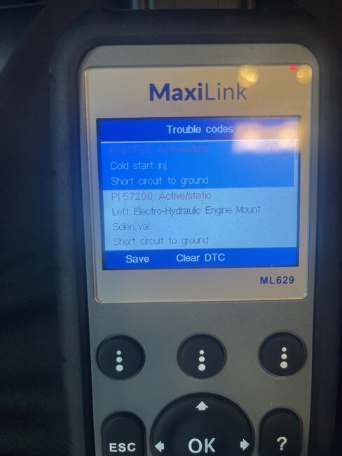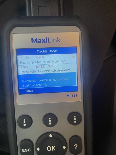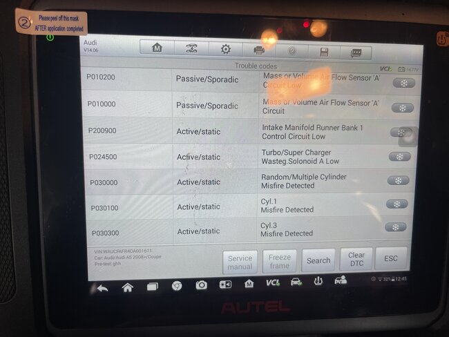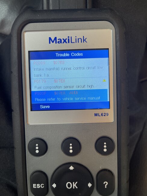 Idles rough, starts right away, several codes which am always positive most of them are connected, misfire as check engine flashes. If i remove the MAF sensor it gets better, and no flashing check engine. These are the codes from before I deleted them to see what stays.