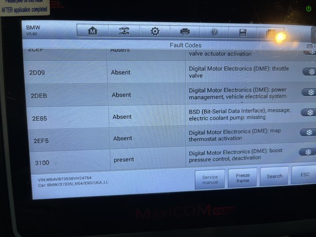 Since this has been the trouble car of the week for me, I haven't stopped things about this thing, i did some more investigating, and the 3100 Code can be caused by a bad Cam or crank Sensor or part of the Vanos system that controls cam timing, The 3100 is a boost deactivation code. The ECM does this due to a cam sensor or variable control solenoid issue.