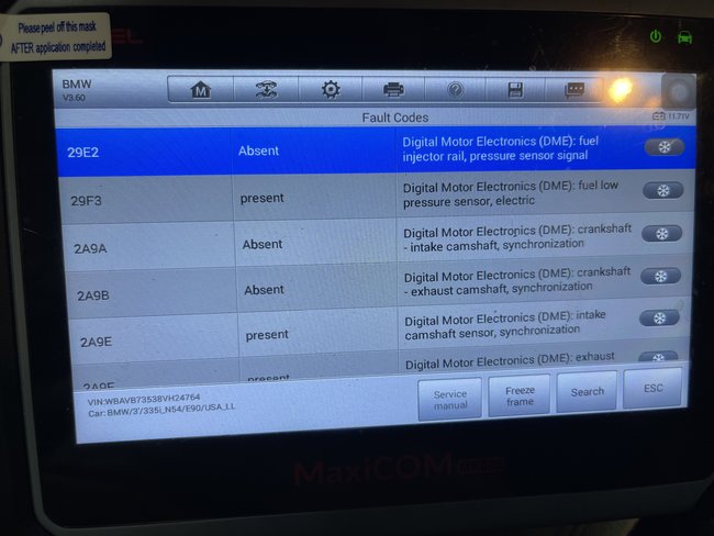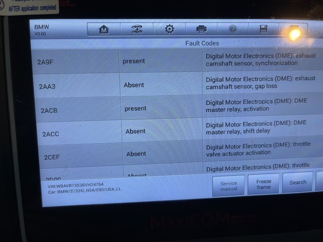 Okay, i have now gone through every code, the interesting part ive noticed is most of these codes are not present at the time of this reading. except intake and exhaust cam sensors- DME relay- and low fuel pressure sensor (so this code is referring to the low-pressure side fuel system since this car has both low and high pressure.