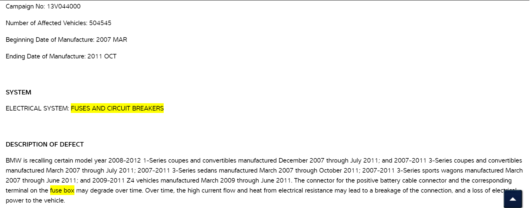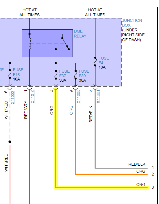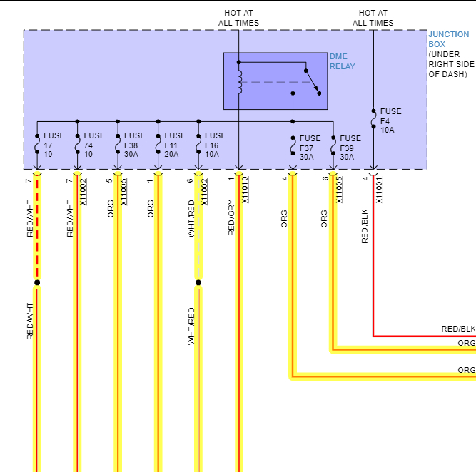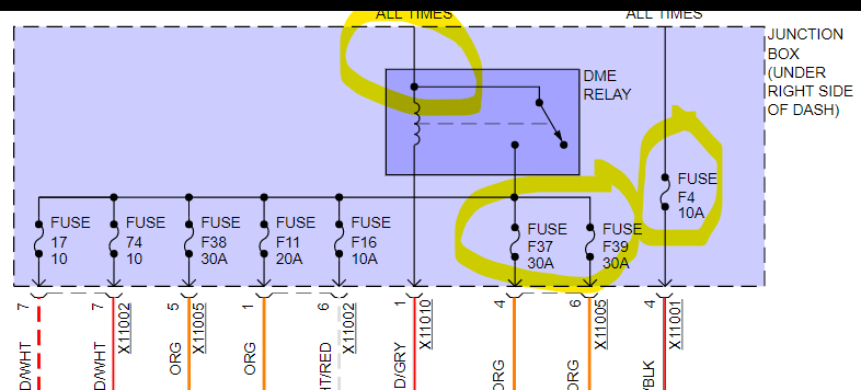 Also here, this may be caused by the DME relay not disengaging due to melted wires, so it can't turn off, the DME monitors this circuit and flags this code for possibly not shutting down.