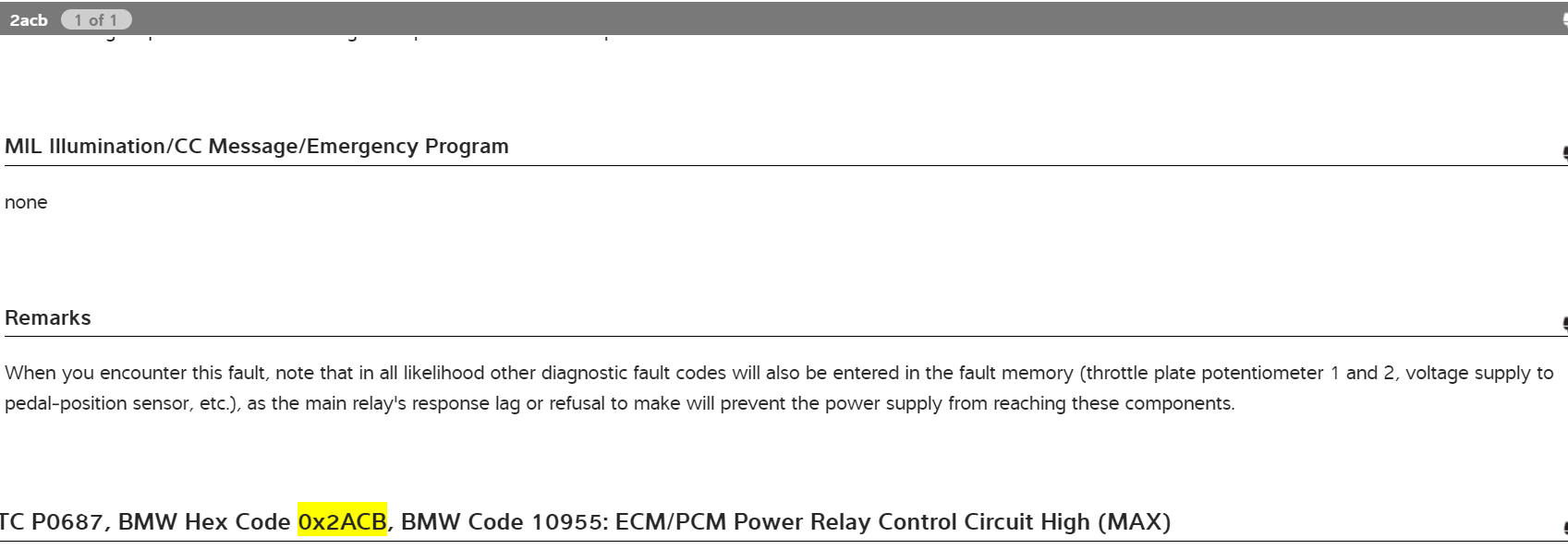 The DME relay code 2ACB is related to the relay switching too slow or lagging behind and can set throttle related codes. Posting this below, maybe replacing this DME relay might be worth a try. Though I don't to throw parts at a car, at this point it's worth a try, relays don't cost much.