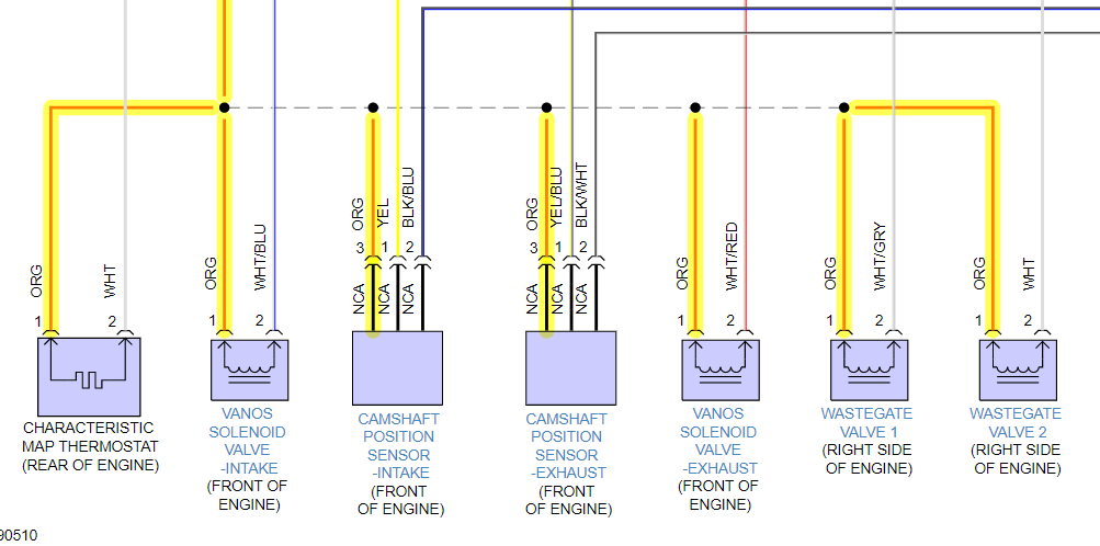 I found something, this one circuit feeds everything you're having codes for. Check this out, second diagram, all power feed for everything you're having codes for comes from this fuse F37, and that's fed directly by the DME relay... I think this might your issue. It may be an intermittent problem which is why the codes are not all present right now. This maybe a low power (voltage) issue at starts up or something along those lines...