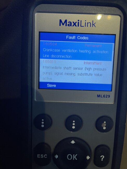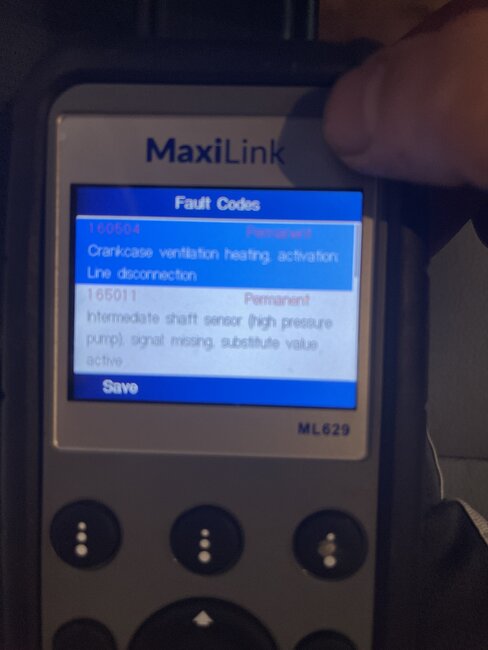 I finally got the replacement engine in. This engine has 82k, came with all the sensors included with the engine, including turbo. I of course put back the original ECM which bolts to the intake, otherwise the car would not start. it started fine with no issues, ran it few days while still on the left, and of course I have to re-check everything to make sure no hoses, harness, or connections were damaged or were unplugged. I started it yesterday and took several times to start. The air filter box which connects on the top and which connects to where the MAF sensor was off, so I thought maybe the air was not measured correctly, but it started. I have several codes which I am sure are correlated. There is a very tiny misfire, or I should say what feels like a minor vac leak which causes a minor hiccup while it's running and parked. Checked codes and this is what I have. First few show all the codes. After I deleted them and started it I got less codes which can be seen in the pictures where I have my finger in it. One of the codes may be blurry to you in one of those pictures but it's 160504. The last picture shows the codes after I deleted them again and restarted.