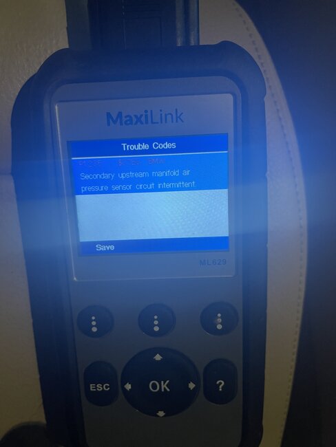 For some reason searching the code online it also says has to do with the fuel pressure or pump or something. But the scanner reads p1235 secondary manifold air pressure sensor circuit intermittent. If i delete the code it starts normally. Once i shut it off and start again i can tell that the code is back because it takes a second longer to start. Meaning it turns over more a second longer when it sets the code.