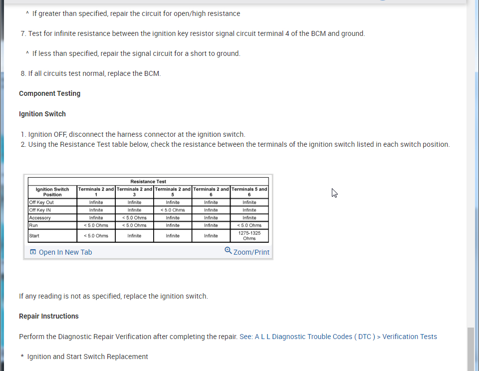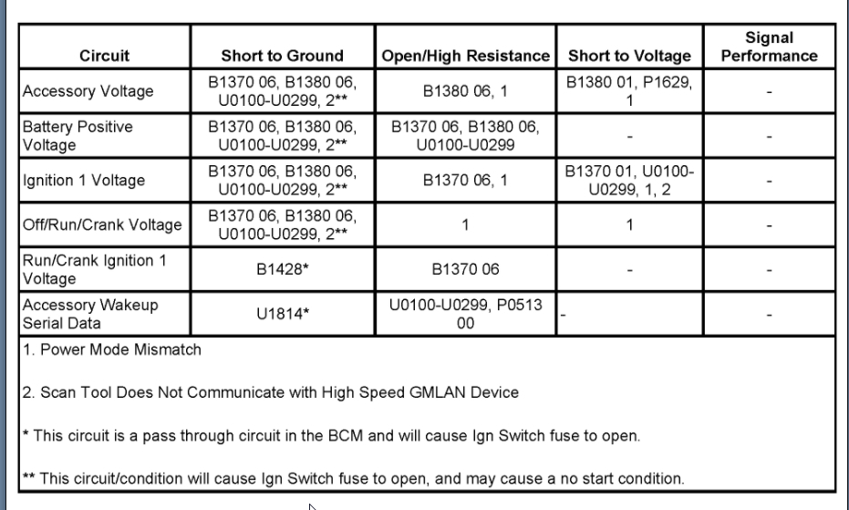 I attached all the info below for this including the wiring diagrams needed to test the wiring for a short to voltage and an open between the BCM and ignition switch.