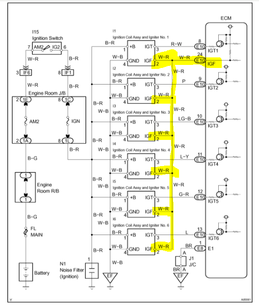 Okay, where do I get a larger photo of this? It is also I cannot just buy the harness for the coil packs the have to be hard wired in. Fuses are good in both places, so it is very likely I have a voltage drop going to the ECM. Also, I need the colors and the pin set for each coil. Please. However, if this wire puts the all the coils in a series there could be just one failure point or multiple failure points in this wire.