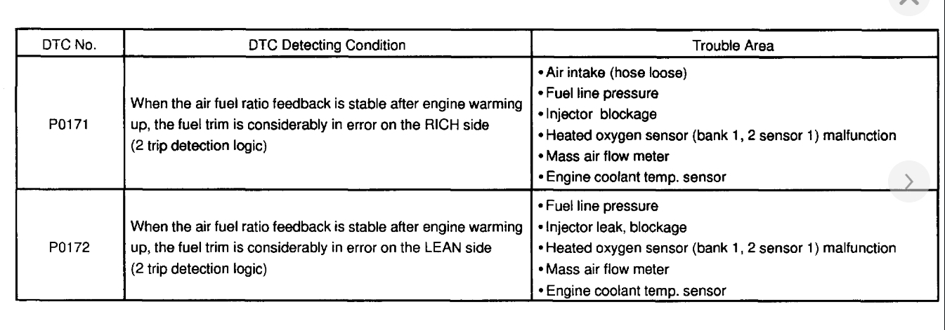 DTC P0171 System Too Lean (Fuel Trim)-Ex. Calif