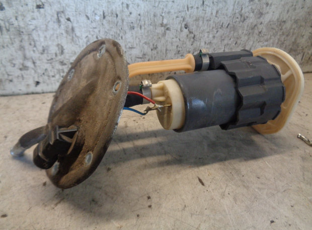 There are 2 wires for the fuel pump, 12V feed is on the red/blue wire and the brown wire carries the ground.