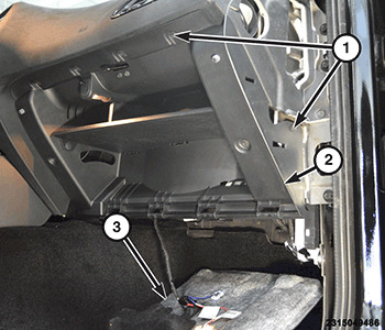 3. Remove the glove box and the glove box trim panel from the instrument panel. See: Glove Compartment > Removal and Replacement > Instrument Panel Glove Box - Removal.