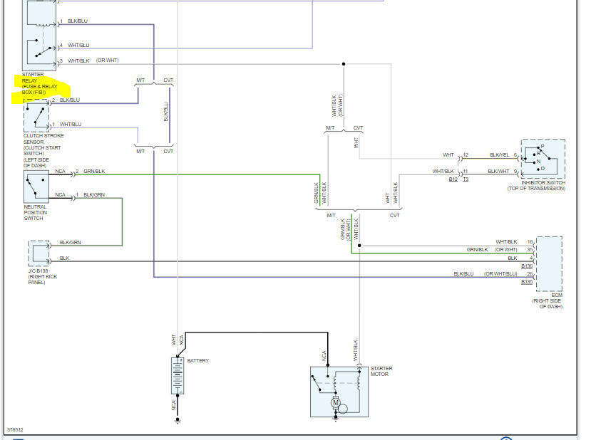 Does the vehicle have a factory remote start system or has someone installed an aftermarket one? let me know that information so I can look at the correct wiring schematic for the starter circuit. If it doesn't, then we have a traditional starter relay. If it does have a factory remote start, it is designed differently.
