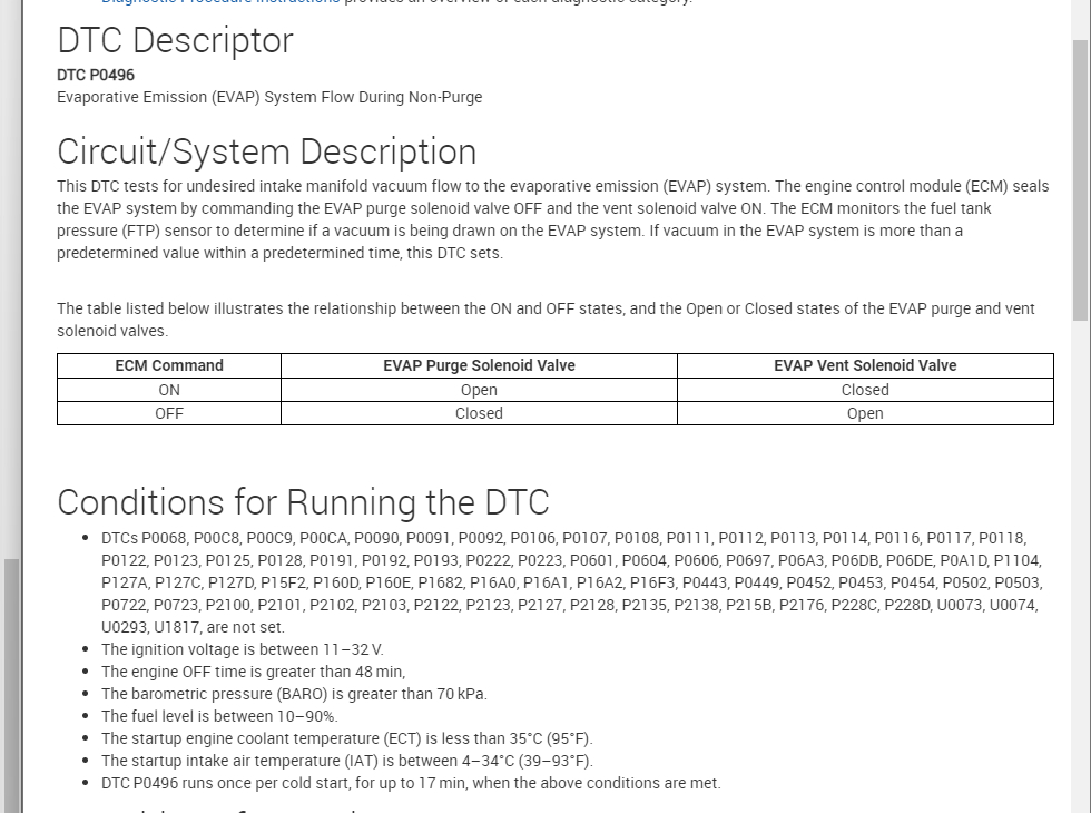 The code: P0496 - Evaporative Emission (EVAP) System Flow During Non-Purge