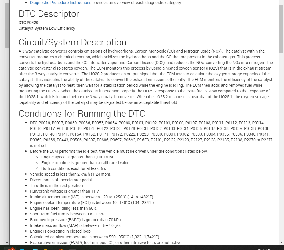 Okay. That is great info. If this is throwing this code now, that is telling you that the converter is not reducing the emissions enough and the vehicle is potentially putting out too much damaging emissions.