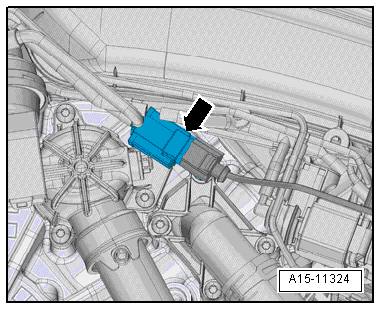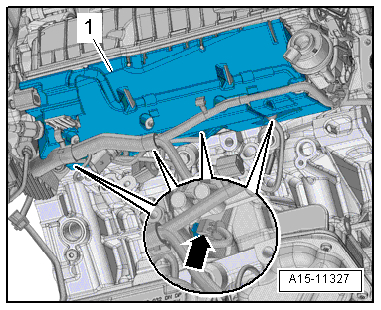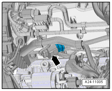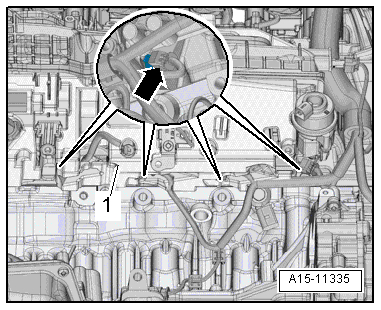 Disconnect electrical connector -arrow- from the fuel injectors.