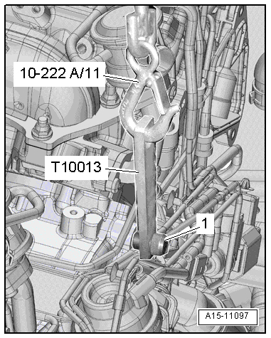 Engage the carabiner hook of the -10-222A/11- on the -T10013- and pretension the engine slightly.