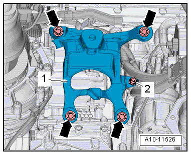 Remove the bolts -arrows- and remove the right engine support -1-.