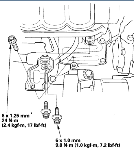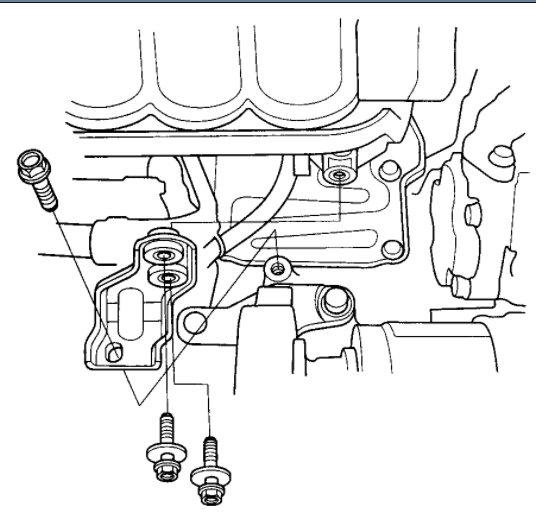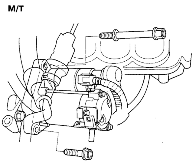 6. Remove the two bolts securing the starter, then remove the starter from the engine.