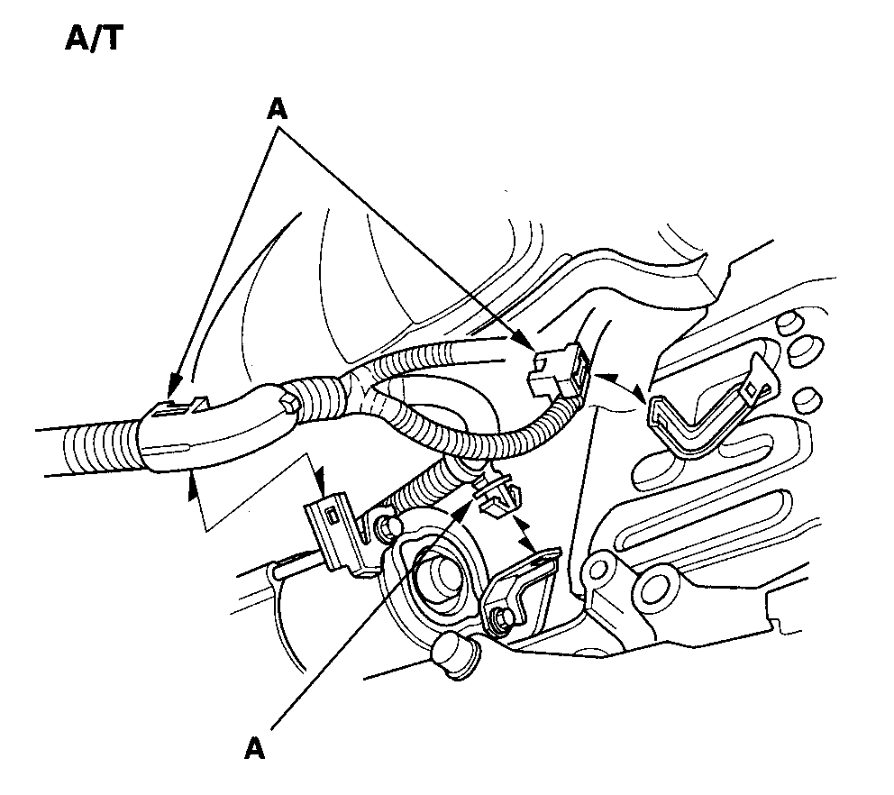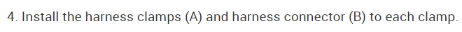 4. Install the harness clamps (A) and harness connector (B) to each clamp.