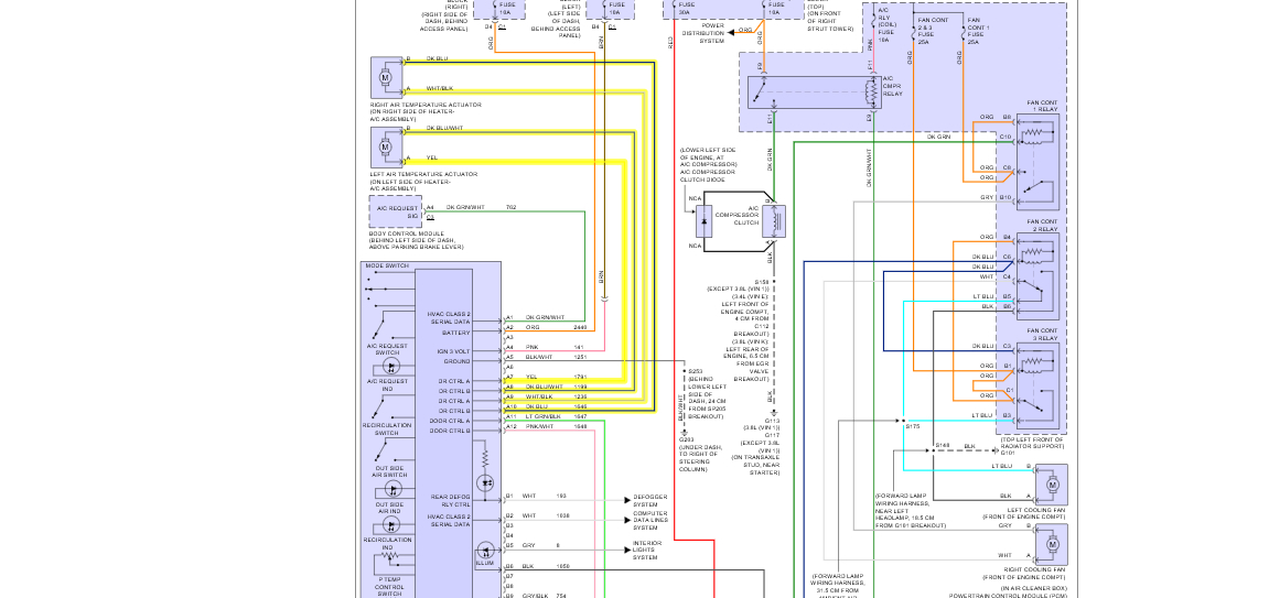 Here is a wiring diagram of the circuits that control each side of HVAC system. There a two different motors that are used, one Right Air Temperature Actuator and one on the Left. Both are controlled by the center console HVAC unit. There may be a problem with one of these motors or the control unit itself. You would have to dig into the dash board and see if this motor was getting power when you switch the controller over to that setting. The circuits are all highlighted in yellow. You could also take out the center console unit and check for power at the back of it also. Hope this helps some. Let us know what you find.