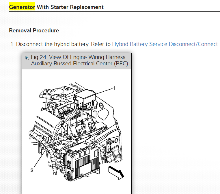 Here is a guide so you can test the alternator with diagrams below on how to change the unit out. You must disconnect the hybrid battery and the 12 volt battery as well which I have given instruction for as well.