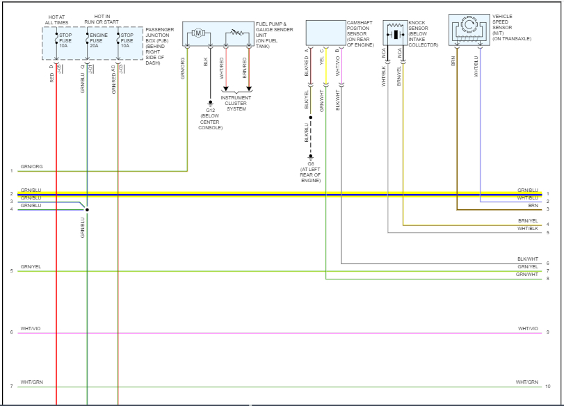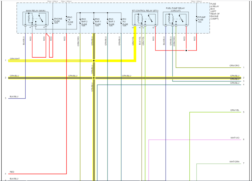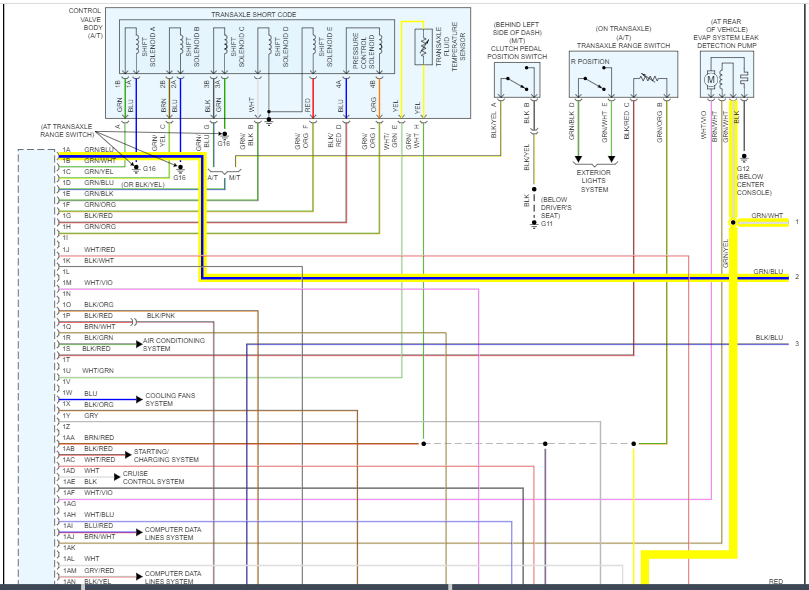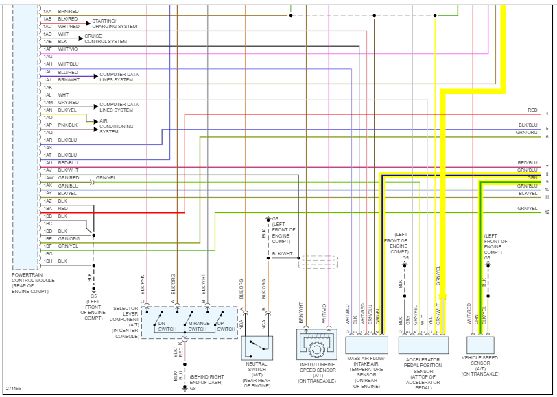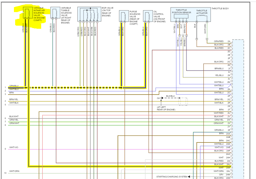 I attached the entire powertrain management system schematics below. I highlighted the wiring related to the runner.