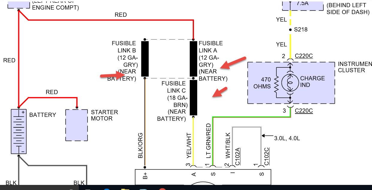 see pic and check fusible links as well as belt and tensioner both should be replaced at 60,000