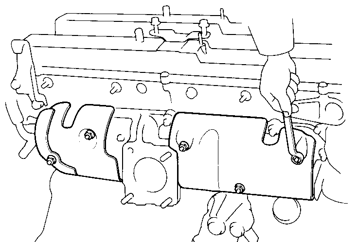 (f)Remove the manifold stay mounting bolts.