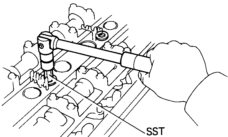Using SST and hammer, drive in the pulley. SST 09214-60010