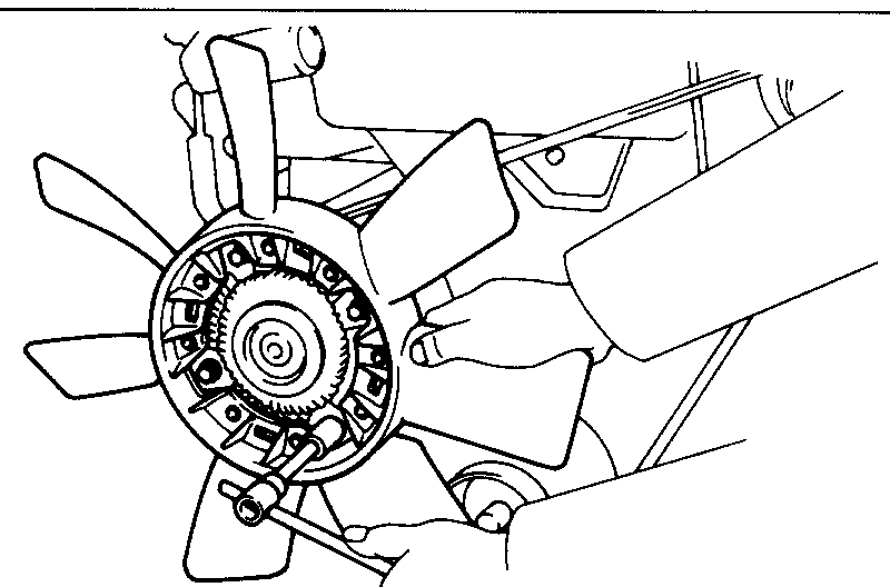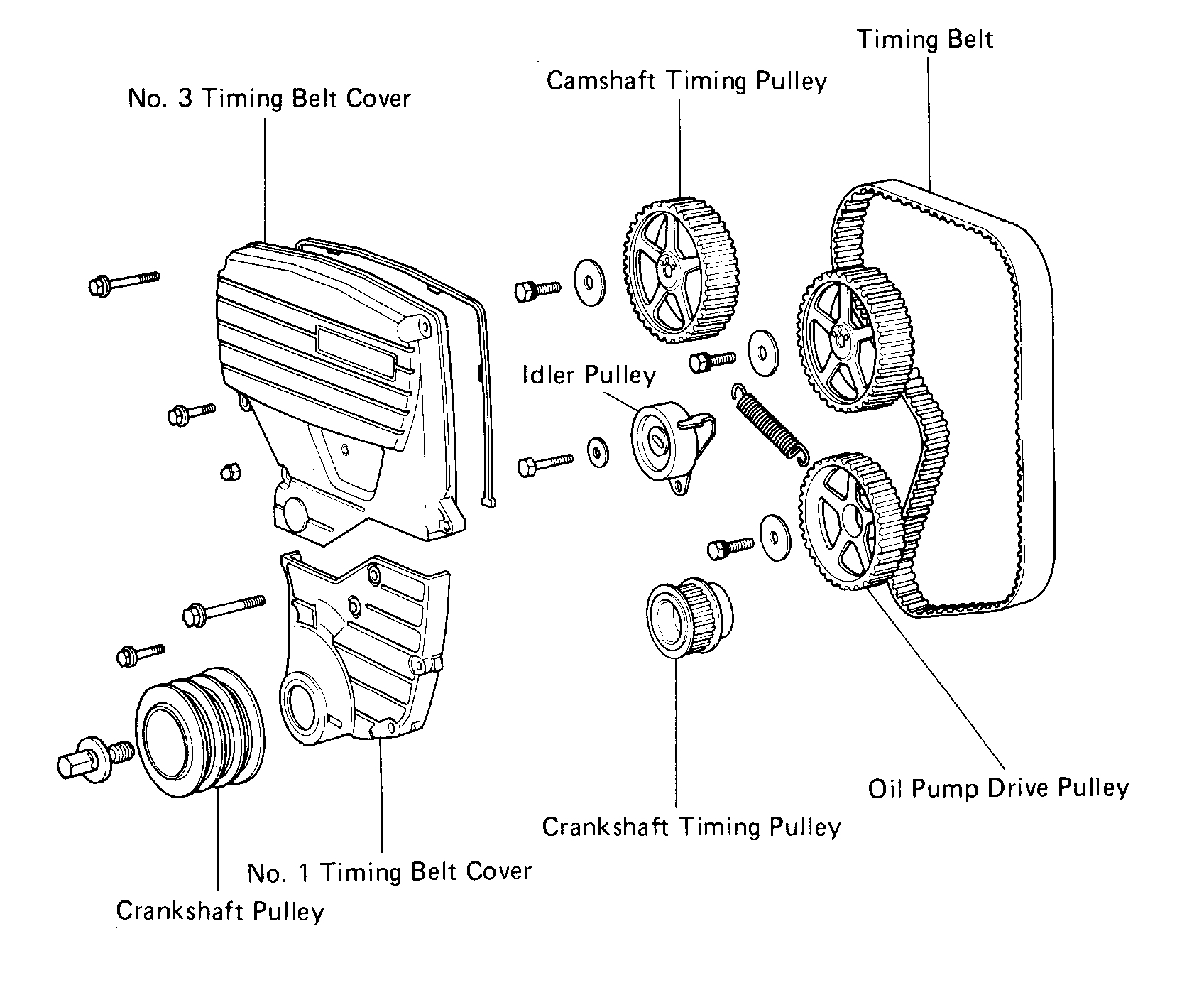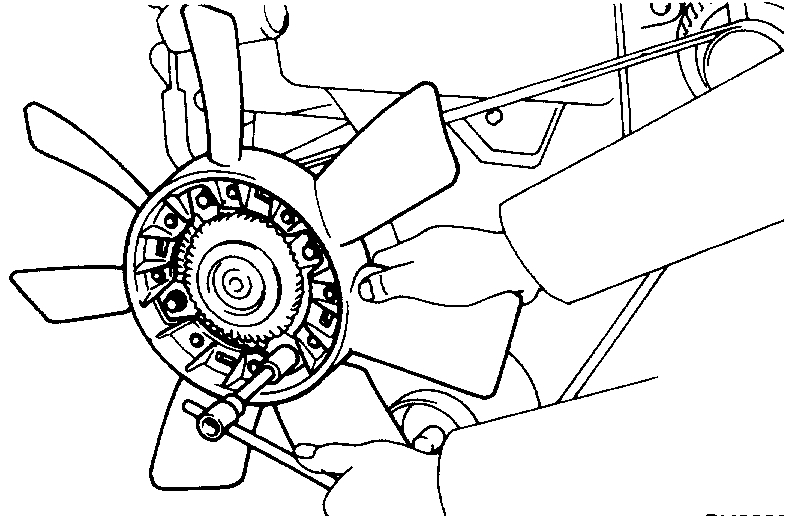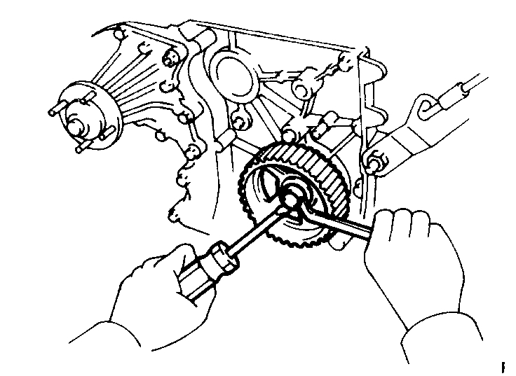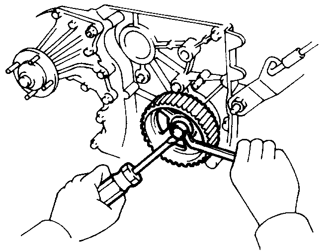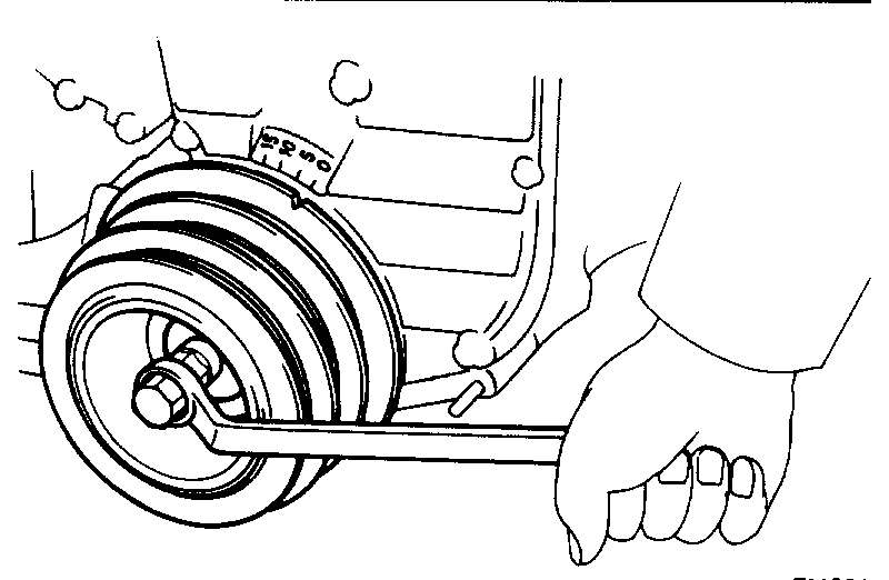 CAUTION: Do not make use of the timing belt tension when removing and installing the pulley bolts.