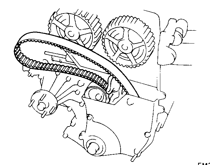 NOTE: If reusing the timing belt, draw a direction arrow on the belt (in direction of engine revolution).