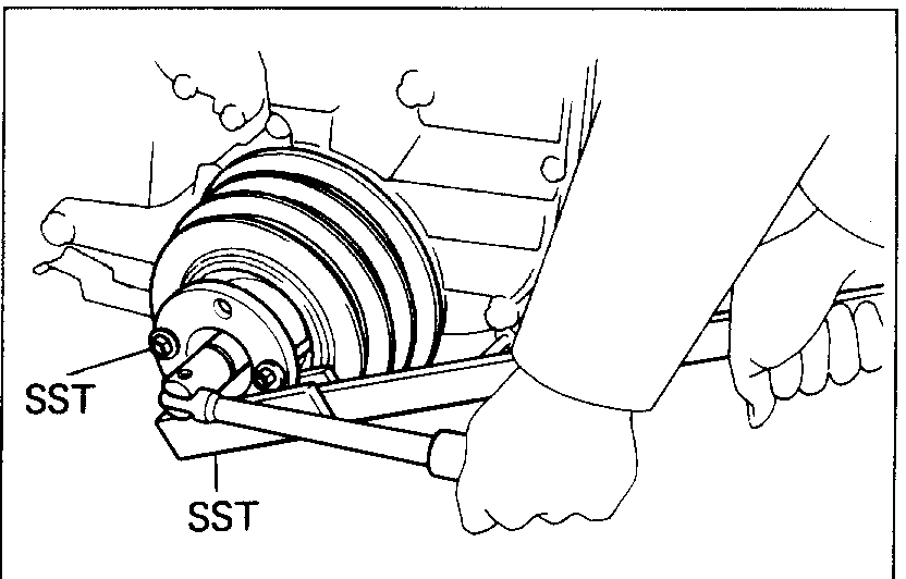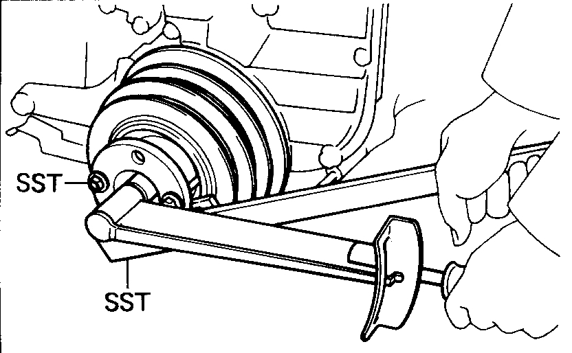 (c)Using SST, remove the pulley. SST 09213-31021
