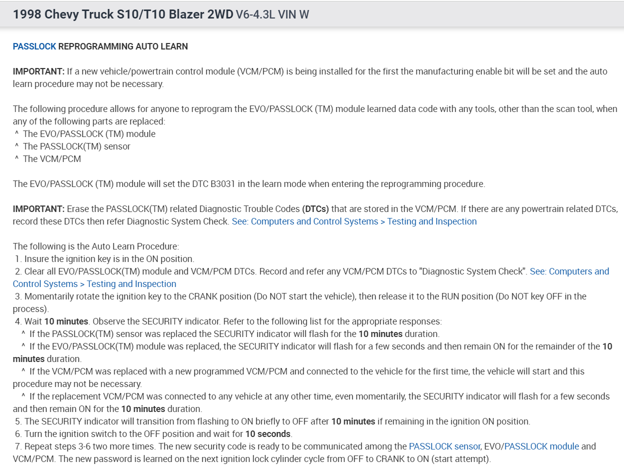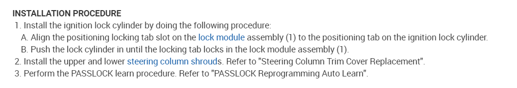 7. Repeat steps 3-6 two more times. The new security code is ready to be communicated among the PASSLOCK sensor, EVO/PASSLOCK module and VCM/PCM. The new password is learned on the next ignition lock cylinder cycle from OFF to CRANK to ON (start attempt).