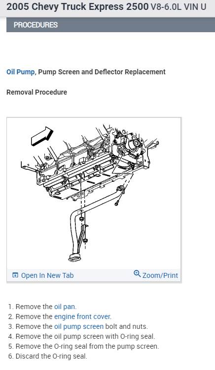 You will first have to remove the oil pan, engine front cover, and water pump.