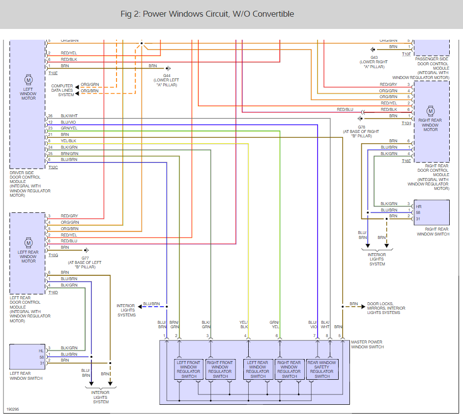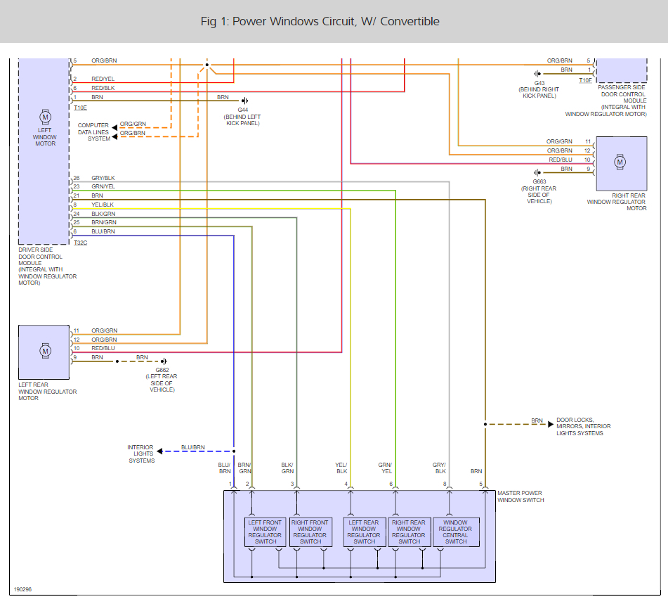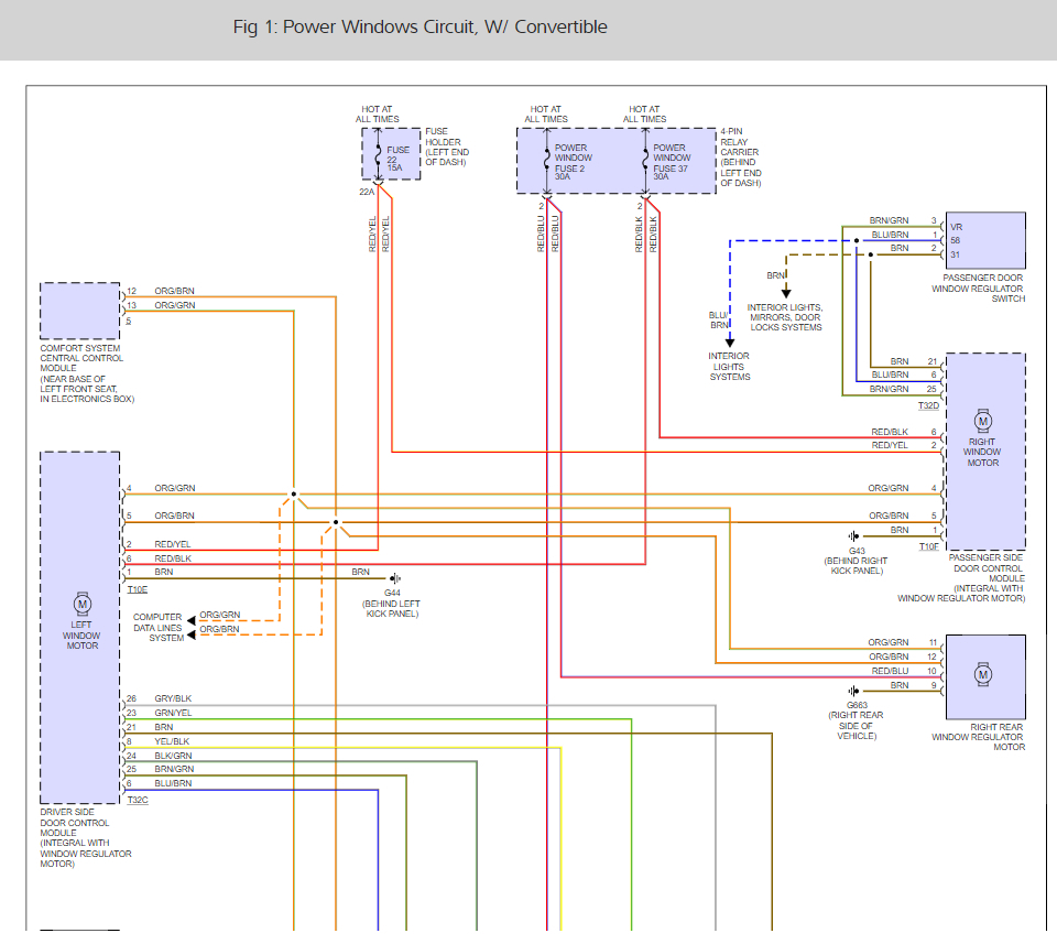Can someone please provide me with a passenger rear window regulator wiring diagram for the car listed above?