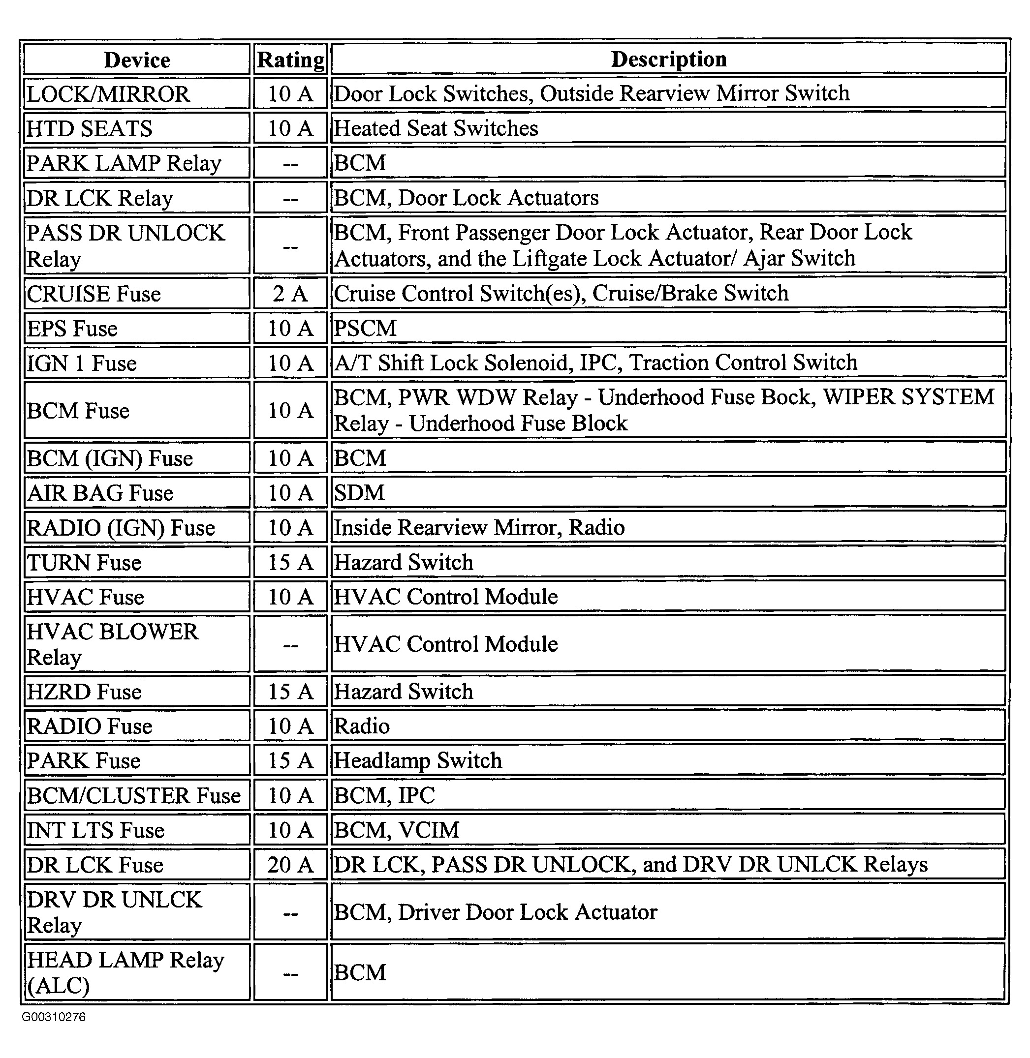 There's three 10-amp fuses involved with various interior lights. The lift gate lights and front and rear dome lights get their power from the Body Computer. Unfortunately the fuses aren't numbered but they might be labeled as "park fuse", "BCM / cluster fuse", and "int lights fuse".