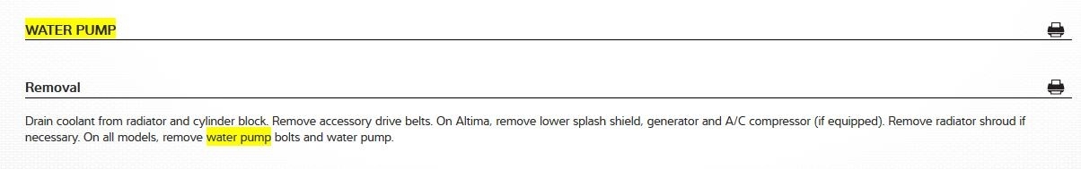 The printed instructions are pretty sparse. Basically, it just says to drain the coolant, remove the belts, remove the bolts, then remove the water pump. Remove the radiator shroud if necessary.