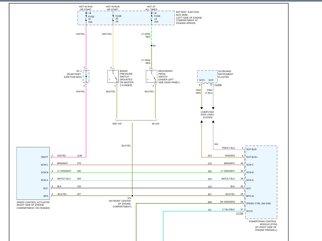 The Cruise Control Fuse is fuse 37 of the battery junction box in the engine compartment, In the diagrams down below I have included the diagrams with call out for the battery junction box, the cooling system locations, and the locations of the transmission components for your vehicle as well. Please go through these guides and get back to us with what you find out. I hope that this helps.