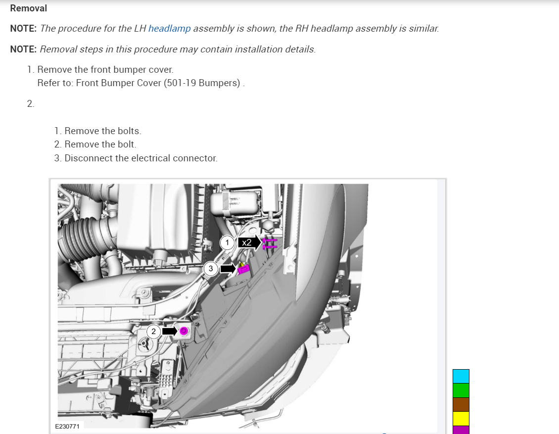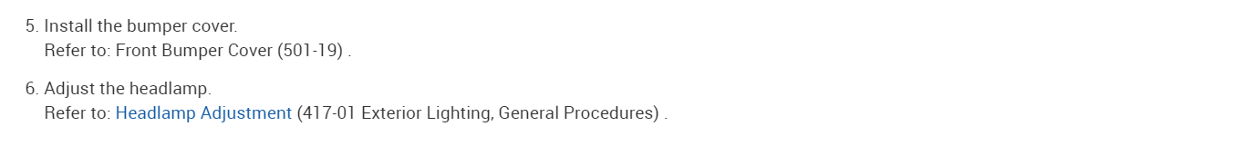 Diagrams 8 to 18 are for the front bumper removal. And I will post the Headlamp Adjustment instructions shortly. It looks like there is a video shortcut from Ford for this, so hopefully the shortcut is still valid