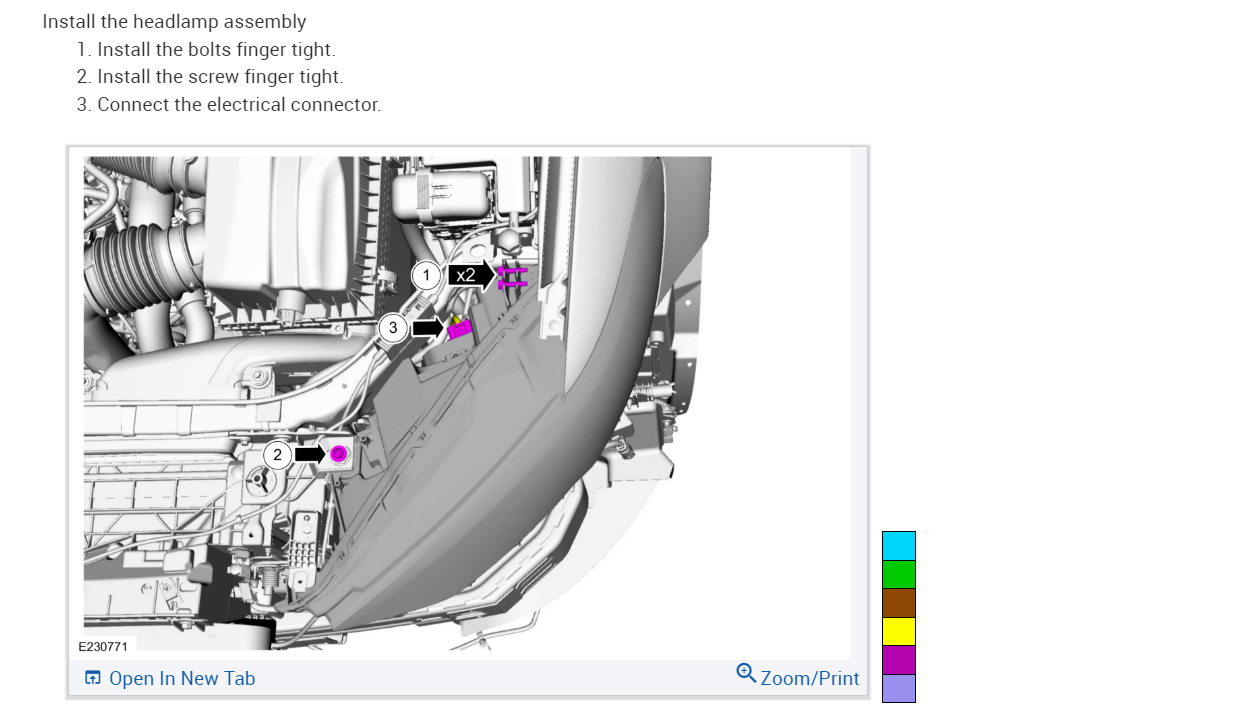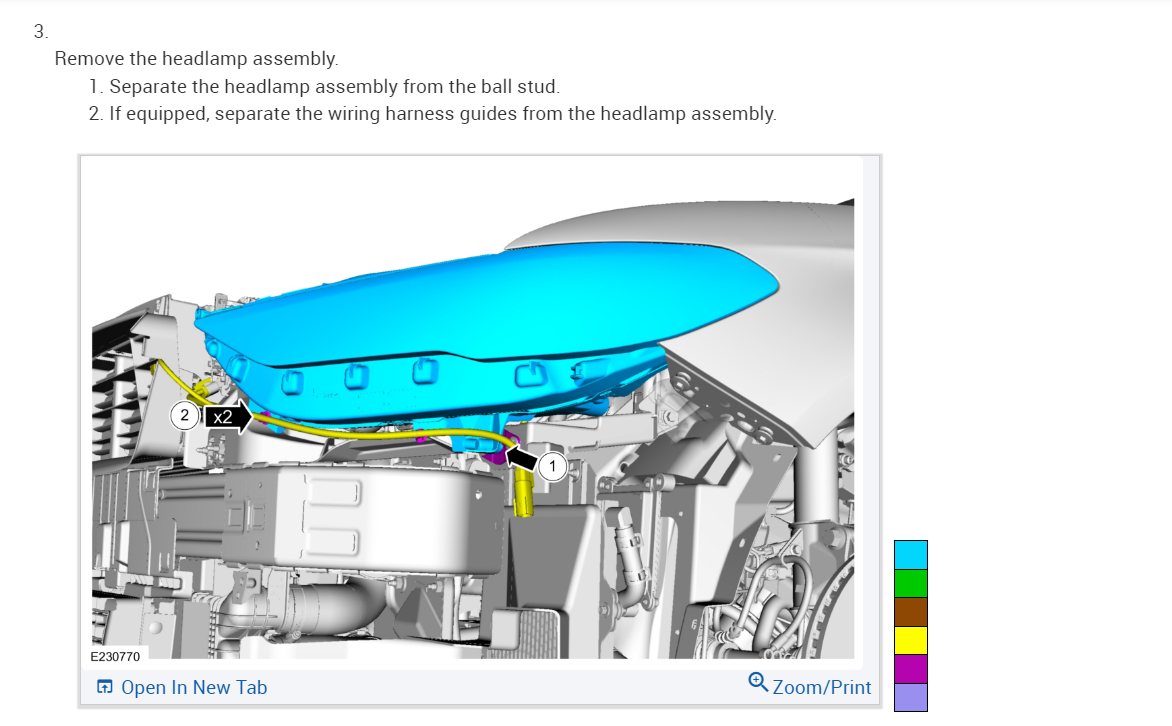 Hello, these are the steps for removing and installing the headlamp assembly, I will still have to pull up the Bumper cover removal steps and the Aligning the Headlamp steps.