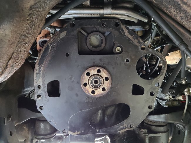 Looks like this engine is not a Gen 3 (not sure on cut off years) but the later generations of this engine have a backing plate that goes over that flange. Take a look at the picture below. I am not sure why this is but I am not a Toyota guy so I am sure there are people out there that know why this one came with that backing plate and the others that I am seeing have the larger opening.