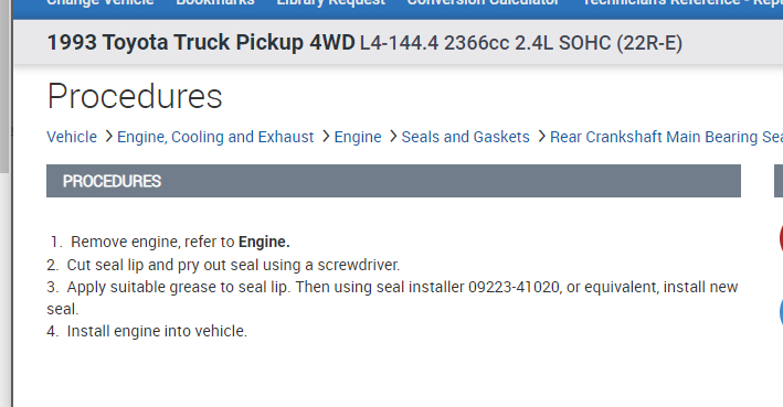 You have to love Toyota and their earlier service manuals. You should be able to do this in 4 steps according to them. Remove engine. Remove seal, Apply grease, install engine. Done.