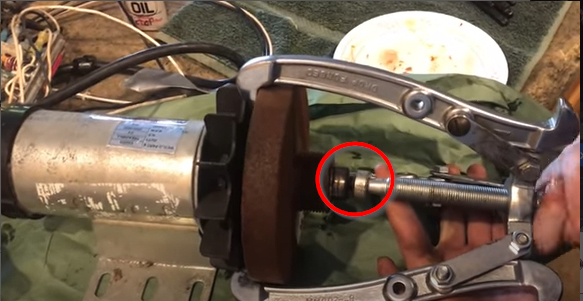 You will have to use a 3 jaw puller and pull that flange off. However, if it were me, I would try and cut that off and then replace the seal and replace that backing plate with the one that has the larger opening.