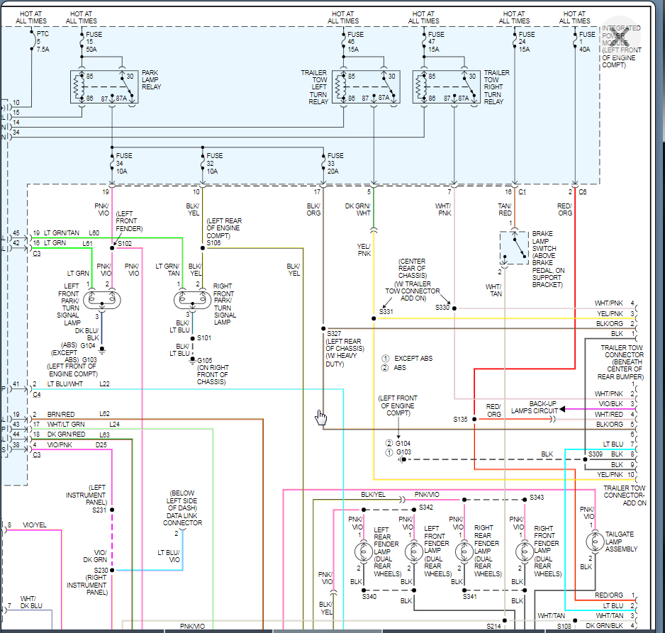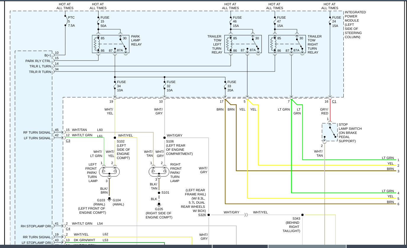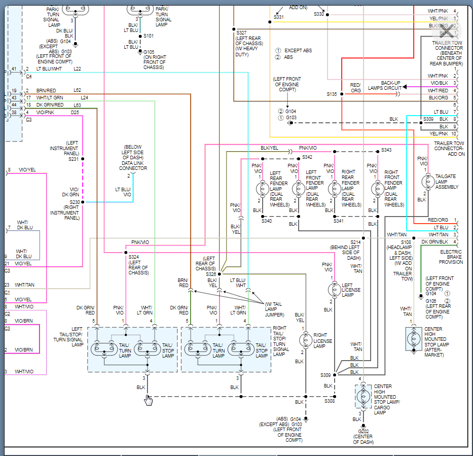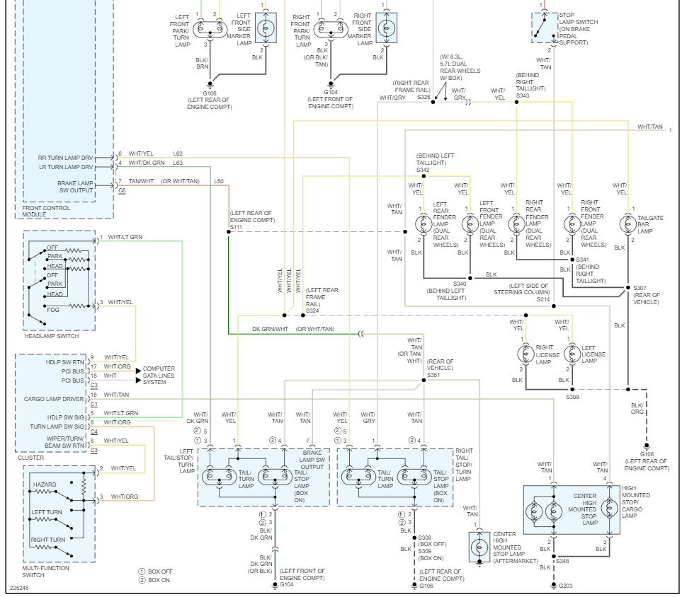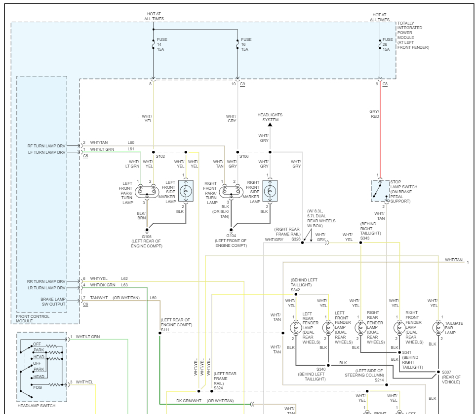 Be aware the rear tail lights are on two different circuits, and they're fed from the Totally Integrated Power Module. That replaces the common sense switch with a computer module. As such, there are two things to keep in mind. The first is you don't want to overload the circuit and risk shorting a driver transistor. If that looks like it's going to be a concern, check if you have relays in it for "Trailer Tow". Those relays can handle plenty of current and won't affect the other lights. If you switch to LED tail lights, but now you have more than were on the old box, all together they might draw enough current to prevent getting a "burned-out" bulb message. If you don't have a Trailer Tow relay, I can help you add one if needed.