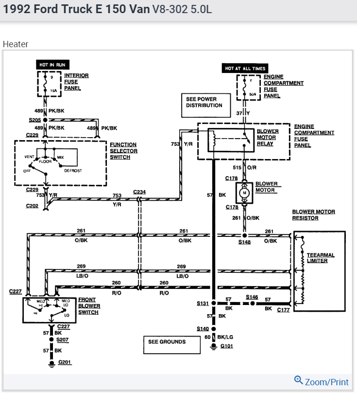 In my diagram, current starts at a 60 amp fuse which will be under the hood and it will feed other systems. Next, it goes to a blower motor relay, then to the motor. It looks like all of those components are under the hood. From there, there's a lot to describe related to tests and observations, and rather than cover everything, start by listening to the fan motor. With the switch totally out of the circuit, the fan should still be running on the lowest speed with the ignition switch on and the heater mode switch on any setting other than "off". If it does, everything up to that point is working and you should find some voltage on the orange / black wire at the switch. If there's 0 volts on that wire, suspect a corroded connection at the firewall connector. You can verify that by checking for some voltage on that wire at the resistor assembly. The voltage should be the same at both places. For this type of suspected problem, a test light is much more accurate than a digital voltmeter.